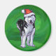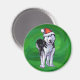 Imán Husky festivo en Santa Hat en Green