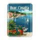 Una descripción cautivadora y nostálgica de Hvar, Croacia, conocida por su impresionante costa adriática, vibrante vida nocturna y encanto histórico. El diseño refleja las cristalinas aguas turquesas de la isla, su pintoresco puerto y sus antiguos edificios de piedra situados a lo largo de la costa. La obra de arte, de estilo vintage, evoca la serena belleza y el animado ambiente de Hvar, invitando a los espectadores a explorar sus encantadores paisajes y su rico patrimonio cultural.