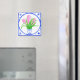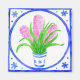 Un imán cuadrado de frigorífico con un diseño "de baldosas" pintado a mano de una olla de jacintos rosas. (Consulte también la tarjeta de felicitación correspondiente y otros regalos).