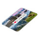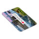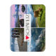 Travel souvenir photo magnet with a collage of four landscape photos of the beautiful country Switzerland, with Matterhorn mountain, alphorn players, a cow in the Bernese Oberland and Lauterbrunnen valley with the text 'I love Schweiz'.