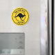 Silueta de canguro amarillo. Icono del vector con color personalizado. Color de fondo personalizado. Dos campos de texto en círculo.