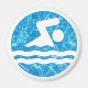 Una decoración divertida y sencilla para los bañistas y entrenadores para nadar que decoran la casa o la oficina, con el clásico icono del nado pero actualizado con agua fresca azul de la piscina al fondo. ¡Se vería bien en el frigorífico de la casa o en el mininefrigorífico de la oficina del entrenador de natación!