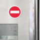 Icono del signo STOP No introduzca ningún imán de nevera del personalizado de entrada. Práctico para casa, oficina, hotel, hospital, práctica, escuela, empresa, estacionamiento, puerta, habitación, dormitorio, etc. Círculo rojo con símbolo de franja blanca prohibido. Agregue su propio texto opcionalmente.
