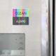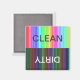 Un diseño contemporáneo con franjas de arcoiris claras y apagadas, para que todos sepan si los platos del lavavajillas están limpios o sucios.