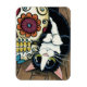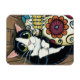Imán Ilustracion de cráneo de azúcar y gato de Tuxedo
