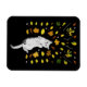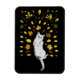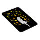 Gato blanco con hojas caídas y ilustracion de fondo negro.