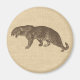 Magnate elegante con ilustracion de vista lateral de leopardo marrón vintage sobre fondo "burlap" de color marrón claro