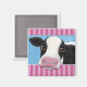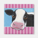 Un imán caprichoso y caprichoso haría el regalo perfecto o el relleno de medias para cualquier amante de las vacas. El diseño presenta una vaca negra y blanca con ojos marrones mirando sobre rayas rosas. Pintura © Lisa Marie Robinson. Todos Los Derechos Reservados.