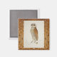 Cuenta con un granero de aspecto ovalado o una lechuza con paja encaramada sobre una rama blanca. Sus ojos están mezmerizándose y un poco tristes. Definitivamente tiene carácter. Ilustracion rústico vintage de naturaleza.