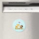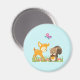 Un imán con un lindo ilustracion con un ciervo y una ardilla sosteniendo una bellota y una mariposa sobrevolando sus cabezas. Estas adorables criaturas de los bosques sobre el césped con algunos hongos extravagantes a sus pies.