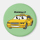 Este feliz taxi amarillo está listo para recoger pasajeros. Dibujado en un divertido estilo personalizado.