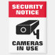 Imanes de aviso de cámara de seguridad. Signo de advertencia moderno con lente de cámara. Proteja su hogar y su negocio con monitorado de video.