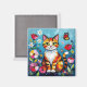 Cat themed magnet. A cute orange cat sitting in flowers and surrounded by butterflies. The art is in an impasto oil paper quilling style.