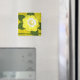 Imán Impresión cruzada de rosa amarillo brillante y hoj