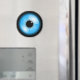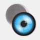 Redondo imán de frigorífico con un diseño de globo ocular realistas azul. La decoración casera coincidente está disponible en la tienda de diseño ScriptoGraphic.