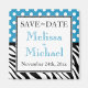 Elegante personalizado Guardar el imán de fecha para anunciar a su boda, diseñado con puntos de polka blancos sobre azul en la parte superior y la huella de cebra en blanco y negro en la parte inferior.