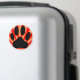 Una huella de un perro con vigas de luz en naranja y rojo. Diseño original.