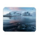 Esta foto muestra Stokksnes, Vestrahorn, Höfn, Islandia en invierno. Fue tomada en Islandia al final del invierno. Muestra hermosos paisajes y montañas con hielo y nieve y una luz asombrosa. Fue tomada durante un huracán al atardecer.