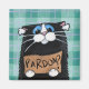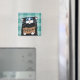 Magnate de frigorífico para gatos. ¿Un gato blanco y negro sostiene un cartel de cartón con el signo de indulto? escrito en él. ¡También tiene lana de algodón en sus oídos! Creada a partir de una pintura original de 2008 Lisa Marie Robinson