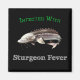 Atar a un esturión monstruo es una experiencia de toda una vida. Atrapa uno y estás enganchado. Vida a todo color como imagen de un esturión gigante con el texto Infectado con fiebre de esturión en el fondo. Disponible en muchos colores.