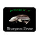 Atar a un esturión monstruo es una experiencia de toda una vida. Atrapa uno y estás enganchado. Vida a todo color como imagen de un esturión gigante con el texto Infectado con fiebre de esturión en el fondo. Disponible en muchos colores.