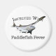 Pocas cosas se comparan con atrapar a una pez remo poderosa. No es fácil y pocos pueden presumir. Imagen detallada a todo color de un pez almendrado monstruo con el texto Infectado con la Fiebre de las almendras.