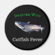 Ya sea que estés comiendo o pescando con un anzuelo y un pecador, pocas cosas se comparan con atrapar un pez globo potente y delicioso. Sí. Imagen detallada a todo color de un bagre con el texto Infectado con Peste de bagre.