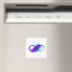 Símbolo infinito con una hermosa pluma pintada de color violeta y azul brillante sobre fondo blanco.
