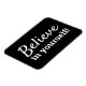 Cita motivacional, inspiradora, "¡Cree en ti mismo!". Un imán que presenta palabras de sabiduría para vivir. El diseño tiene fuente blanca sobre fondo negro que se puede personalizar fácilmente en la sección de la herramienta de diseño de Zazzle.