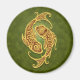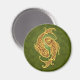 Este símbolo estilizado para el signo zodiaco de Pisces está decorado con líneas complejas y patrones de puntos. El diseño simétrico presenta dos peces elaborados que encajan en un patrón yin yang. Este imán amarillo y verde impresionante es una forma bonita y elegante de mostrar tu signo astrológico.
