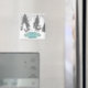 Añada un toque festivo a su cocina en esta temporada de vacaciones con un imán invernal. El diseño del imán presenta una escena de maravillas de invierno gris y blanco con ciervos y renos adornados con copos de nieve en caída y una elegante etiqueta verde azulada con un saludo de vacaciones. También hay artículos de regalo y de vacaciones disponibles con este diseño.