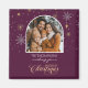 Navidades saludando con un imán fotográfico personalizado sobre el fondo de un copo de nieve. Un imán encantador muestra tu propia foto y nombre. Se incluye un saludo de personalizable. Un imán sencillo pero elegante para incluir junto con la decoración de tus Navidades o como regalo de mantenimiento.