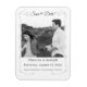 El diseño presenta un fondo blanco para la foto que se suministra como imagen principal. El título, "Save the Date!" (Guardar la fecha), se muestra en el centro superior en un elegante tipo de letra de color plateado. Debajo los nombres de las fotos de la pareja, la fecha del boda y la ciudad y el estado del boda aparecen en una fuente clara y de color plateado. El diseño de un delicado borde rodea el espacio. Diseñado para coordinar con la "Suite Boda simplemente católica". También disponible en color rosa champán.