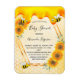 Elegante, divertida invitación a la ducha de bebé, neutral en género. Fondo amarillo con un patrón dorado de panal de miel y miel dulce dorada goteando. Con un marco geométrico de oro falso. Flores amarillas, naranjas y abejas felices. Con el texto: Baby Shower y el nombre de la mamá para estar en el frente escrito con un moderno guión de estilo con letras a mano. Cartas negras. Puede utilizarse como recordatorio de Guardar la fecha para los invitados. Espalda: patrón amarillo blanco de abeja, diseño postal. Sugerencia: Si no desea que se vea como una postal, haga clic en personalizar, vaya a la parte posterior y quite el separador y el sello postal.