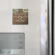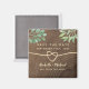 Invitación magnética de anuncio de boda de madera rústica, moderna caligrafía, elegante, boho con vegetación en acuarela y corazón de cuerda dorada falsa.