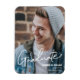 Personalice esta moderna tarjeta magnética de invitación de graduación con la foto, el nombre, el año de clase y el nombre de la escuela de su graduado. Tipografía moderna del guión, elegante y moda. Comparte tu emoción con la familia y amigos en el logro de tu graduación.