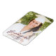Moderno imán de invitación de graduación con una foto vertical personalizado con superposición de texto. La palabra "Graduado" aparece en escritura burdeos, con el nombre del graduado, la escuela y el año de graduación debajo en letra sans serif. Reemplace fácilmente la imagen de muestra con la foto de su propio graduado. Una pantalla de degradado blanco ayuda a asegurar que aparece el texto. Ideal para graduación de secundaria o universitaria.