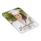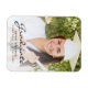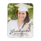 Moderno imán de invitación de graduación con una foto vertical personalizado con superposición de texto. La palabra "Graduado" aparece en escritura negra, con el nombre del graduado, la escuela y el año de graduación debajo en letra sans serif. Reemplace fácilmente la imagen de muestra con la foto de su propio graduado. Una pantalla de degradado blanco ayuda a asegurar que aparece el texto. Ideal para graduación de secundaria o universitaria.