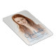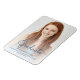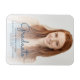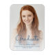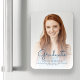 Imán moderno de invitación de graduación moderno con una foto vertical personalizado con superposición de texto. La palabra "Graduado" aparece en escritura a mano azul, con el nombre del graduado, la escuela y el año de graduación debajo en letra sans serif. Reemplace fácilmente la imagen de muestra con la foto de su propio graduado. Una pantalla de degradado blanco ayuda a asegurar que aparece el texto.