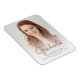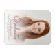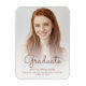 Imán moderno de invitación de graduación moderno con una foto vertical personalizado con superposición de texto. La palabra "Graduado" aparece en escritura a mano de rosa oscuro, con el nombre del graduado, la escuela y el año de graduación debajo en letra sans serif. Reemplace fácilmente la imagen de muestra con la foto de su propio graduado. Una pantalla de degradado blanco ayuda a asegurar que aparece el texto.