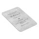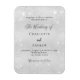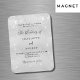 Una moderna y elegante invitación a la boda magnética. Fondo de color plateado falso decorado con purpurinas falsos, chispas. Personalice y agregue sus nombres y detalles del boda. Letras de color negro.