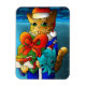 Navidades Cat Guest llega a tu puerta con regalos de tarjetas de Navidad, pescados, bebidas y un regalo sorpresa en una noche nevada. Por gatos acrílicos