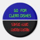 Perfecto para la tecnología con lavavajillas. El lado azul tiene un texto verde (para ir) que dice: "Ve por platos limpios". El lado negro tiene un texto rojo (para parar) que dice: "¡Abortar! ¡Abortar! Platos sucios".