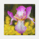 Un solo iris rosa sobre un fondo verde. La original es una pintura al óleo en miniatura de Kathie Miller