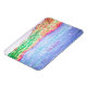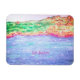 Una pintura original de una isla y aguas en Italia llamada Budelli, tiene un mar turquesa, una vegetación exuberante y rocas violetas y naranjas. ¡También con el lema "Isla Budelli"!