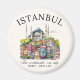 Decorative fridge magnet featuring a watercolor panorama of Istanbul and its foundation year.