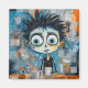 Un personaje caprichoso con ojos de gran tamaño y pelo puntiagudo se representa con una expresión de asombro sentado en una mesa con una taza humeante y una tostadora peculiar. Detrás del personaje, el fondo es animado, lleno de dibujos y garabatos que dan un ambiente caótico y lúdico a la escena.