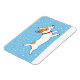 Un lindo imán de frigorífico para los amantes del perro. Feliz cachorro destartalado corriendo por la nieve del invierno. Este divertido imán de frigorífico hace un gran obsequio de Navidades. Visita el mundo del doodle de Jenn para ver más regalos navideños con este lindo perro.