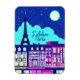 Magnet en un afiche de viaje de París bajo un cielo estrellado azul profundo con luna llena, y la leyenda "J'adore Paris"
