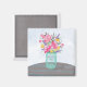 Celebra con tu amigo el día de la madre con este jarrón de bonito de carmín de flores regalo, recuerdo, regalo o fiesta esencial. Sentado en una mesa con un mantel de rayas azules y marrones. Las flores de color de agua son suaves y alegres para el Día de la Madre de tu amigo!